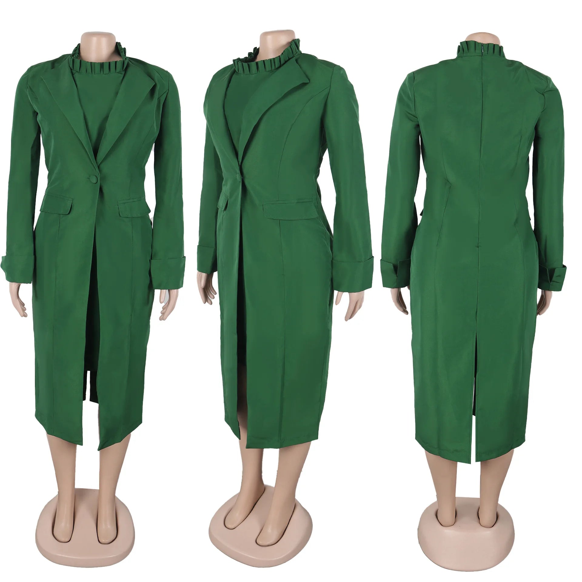 Elegant Office Lapel Long Sleeve Coat And Slim Dress Outfit Female Clothing